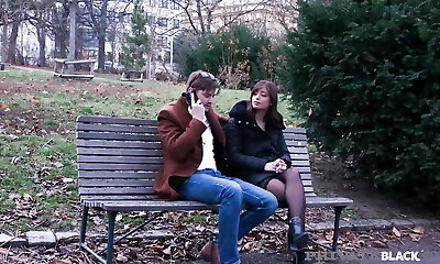 Not too bothered dark haired Becky Bandini bends over letting man penetrate her
