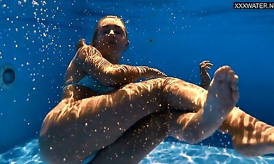 Petite teenie fucked in the pool, indoors and swallows the popshot
