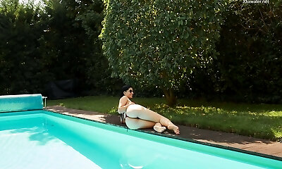 Mz.Dani with big tits getting pulverized outdoors by the pool