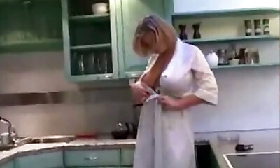 Stepmother tempts her stepson in the kitchen