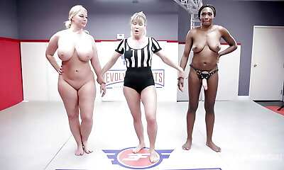 Fake wrestling match with black babe Kelli Provocateur and lot of fuck-a-thon
