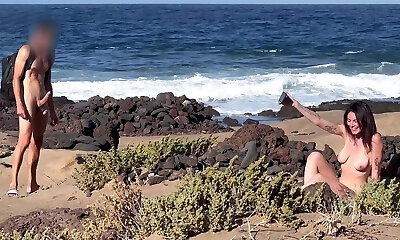 ExpressiaGirl with gigantic tits sunbathes and ambles naked on the beach