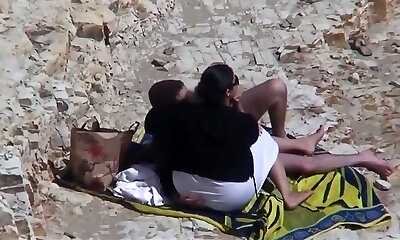 Hidden cam clip with an fledgling Plumper sunbathing on a beach