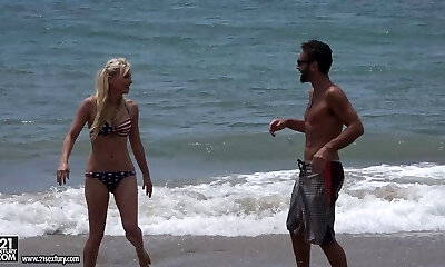 Bikini brunette with pierced clit likes hard fuck on beach