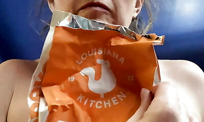 Comfort tonguing! Heartbroken Rachel Wriggler struggles to hold back the tears as she eats Popeyes for breakfast at 6pm