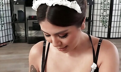 Magnificent Latina maid Selena Star enters Joeys room wearing a