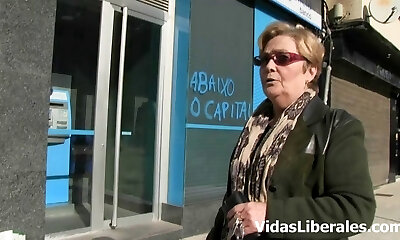 Brunette granny from Germany gets her hungry mouth filled